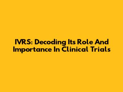 IVRS: Decoding Its Role And Importance In Clinical Trials
