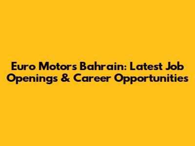 Euro Motors Bahrain: Latest Job Openings & Career Opportunities