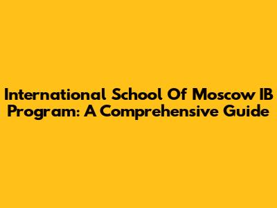 International School Of Moscow IB Program: A Comprehensive Guide