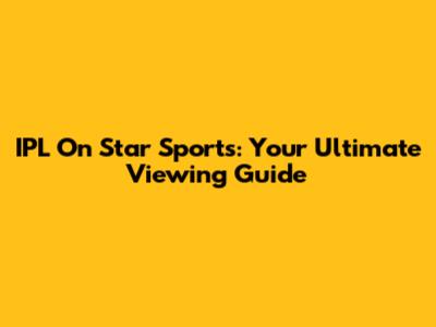 IPL On Star Sports: Your Ultimate Viewing Guide