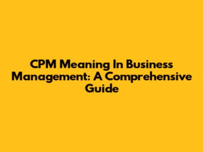 CPM Meaning In Business Management: A Comprehensive Guide