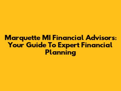 Marquette MI Financial Advisors: Your Guide To Expert Financial Planning