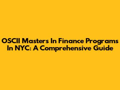 OSCII Master's In Finance Programs In NYC: A Comprehensive Guide