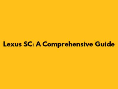 Lexus SC: A Comprehensive Guide