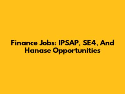Finance Jobs: IPSAP, SE4, And Hanase Opportunities