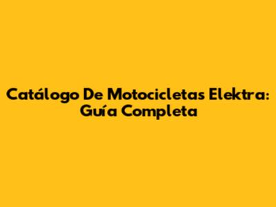 Catálogo De Motocicletas Elektra: Guía Completa