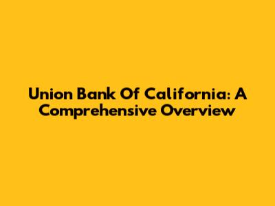 Union Bank Of California: A Comprehensive Overview