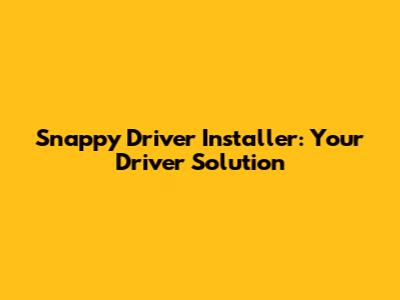 Snappy Driver Installer: Your Driver Solution