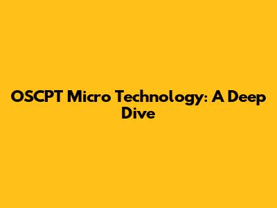 OSCPT Micro Technology: A Deep Dive