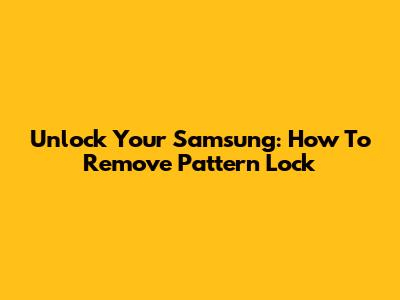 Unlock Your Samsung: How To Remove Pattern Lock