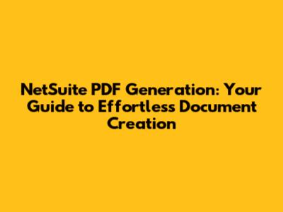 Hey guys! Ever felt like you're drowning in paperwork? Or maybe you're spending way too much time formatting documents in NetSuite? If so, you're in the right place! We're diving deep into NetSuite PDF generation, your secret weapon for streamlining document creation and making your life a whole lot easier. We'll cover everything from the basics to some cool advanced tips and tricks. So, grab a coffee (or your beverage of choice), and let's get started. Seriously, using a NetSuite PDF generator can be a game-changer. Imagine automating the creation of invoices, sales orders, reports, and more – all with a few clicks. Sounds good, right? Well, it is! This guide is designed to be super friendly and easy to follow, whether you're a NetSuite newbie or a seasoned pro. We'll break down the process step-by-step, so you can start generating professional-looking PDFs in no time. We'll be talking about how to customize your PDFs to match your brand, how to automate the generation process, and how to troubleshoot common issues. Get ready to say goodbye to tedious manual formatting and hello to efficient, automated document creation. It's time to take control of your document workflow and free up your time for more important tasks. Let's get into the nitty-gritty of NetSuite PDF generation!