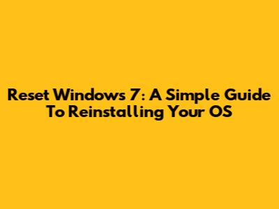 Reset Windows 7: A Simple Guide To Reinstalling Your OS