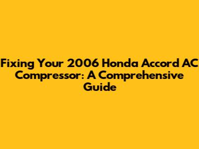 Fixing Your 2006 Honda Accord AC Compressor: A Comprehensive Guide