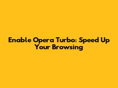 Enable Opera Turbo: Speed Up Your Browsing