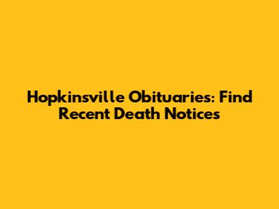Hopkinsville Obituaries: Find Recent Death Notices