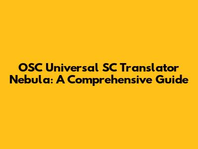 Hey guys! Ever wondered how different software and hardware can seamlessly communicate, even if they speak different languages? Well, that's where things like the OSC Universal SC Translator Nebula come into play. In this article, we're diving deep into what it is, how it works, and why it's super useful. Let's get started!