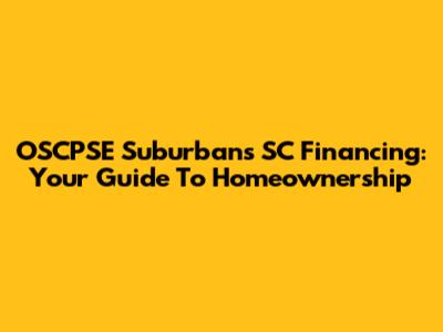 OSCPSE Suburbans SC Financing: Your Guide To Homeownership