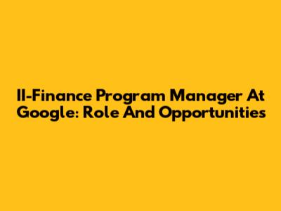 II-Finance Program Manager At Google: Role And Opportunities