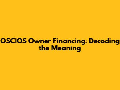 Diving Deeper: Understanding OSCIOS Owner Financing