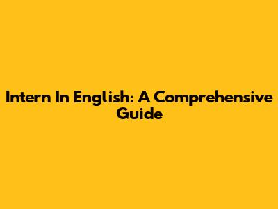 Intern In English: A Comprehensive Guide