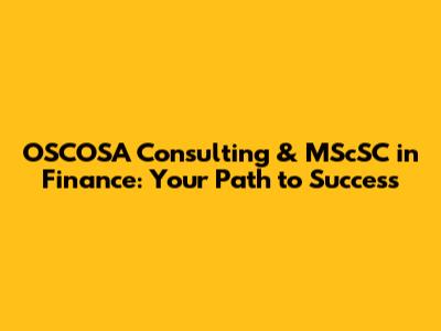 If you're aiming for a career in finance, especially one that involves OSCOSA Consulting and an MScSC, here are some tips: