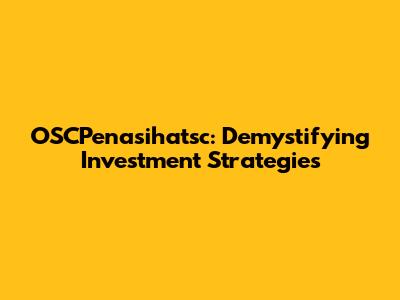 What Exactly is OSCPenasihatsc? Your Investment Sidekick