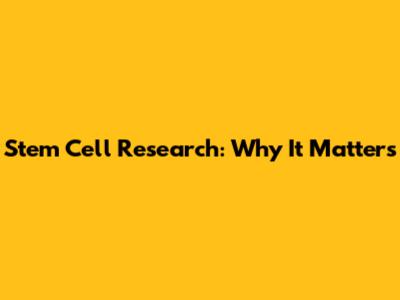 Stem Cell Research: Why It Matters