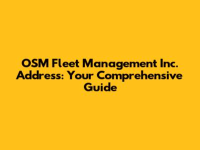 Finding the OSM Fleet Management Inc. Address