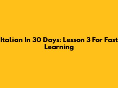 Italian In 30 Days: Lesson 3 For Fast Learning