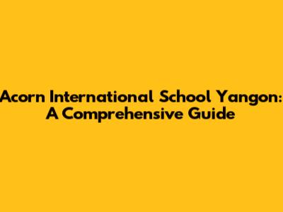 Acorn International School Yangon: A Comprehensive Guide