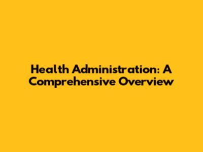 Health Administration: A Comprehensive Overview