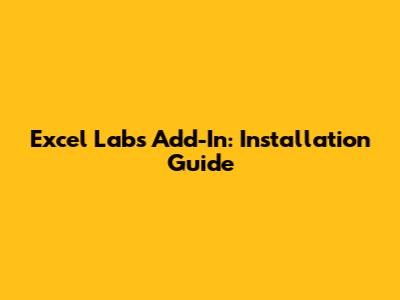 Excel Labs Add-In: Installation Guide