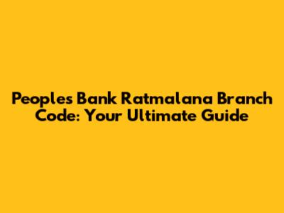 Hey guys! Are you trying to find the People's Bank Ratmalana branch code? You've come to the right place! In this article, we'll dive deep into everything you need to know about the People's Bank Ratmalana branch, including its code, contact information, services, and more. Let's get started!