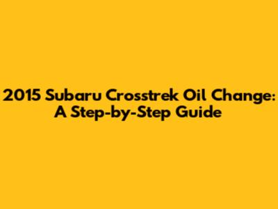2015 Subaru Crosstrek Oil Change: A Step-by-Step Guide