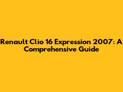 Renault Clio 16 Expression 2007: A Comprehensive Guide