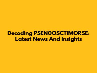 Decoding PSEN0OSCTIMORSE: Latest News And Insights