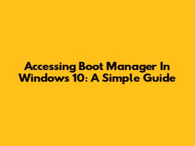 Accessing Boot Manager In Windows 10: A Simple Guide