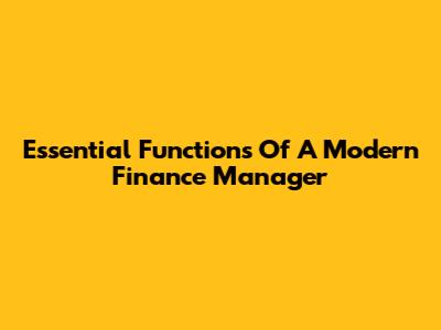 Essential Functions Of A Modern Finance Manager