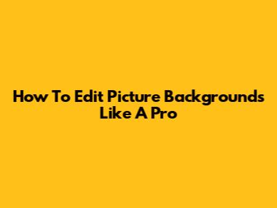 How To Edit Picture Backgrounds Like A Pro