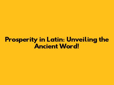 Unearthing the Latin Word for Prosperity