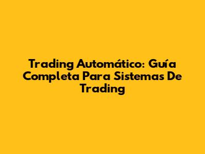Trading Automático: Guía Completa Para Sistemas De Trading