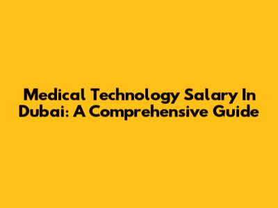 Medical Technology Salary In Dubai: A Comprehensive Guide