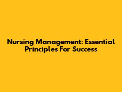 Nursing Management: Essential Principles For Success