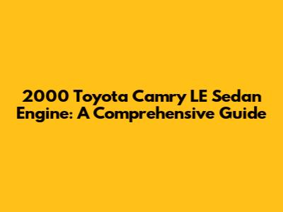 2000 Toyota Camry LE Sedan Engine: A Comprehensive Guide