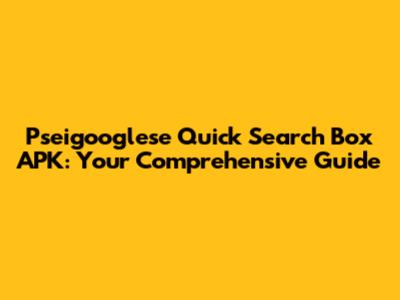 Hey guys! Ever stumble upon a need for a specific app but find yourself lost in the digital wilderness? Well, let's talk about the Pseigooglese Quick Search Box APK. This isn't just any app; it's a handy tool designed to streamline your search experience, specifically on Android devices. Whether you're a seasoned tech enthusiast or just dipping your toes into the world of Android apps, understanding the Pseigooglese Quick Search Box APK can be a game-changer. Let's dive in and explore what it is, why it's useful, and how to get your hands on it. We'll also cover some of the nitty-gritty details to ensure you have a smooth and secure experience. Buckle up, because we're about to embark on a journey through the features, benefits, and installation process of this nifty little APK!
