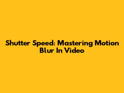 Shutter Speed: Mastering Motion Blur In Video