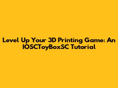 Level Up Your 3D Printing Game: An IOSCToyBoxSC Tutorial