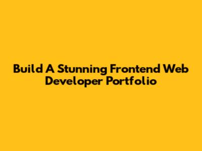Build A Stunning Frontend Web Developer Portfolio