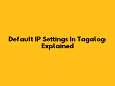 Default IP Settings In Tagalog: Explained