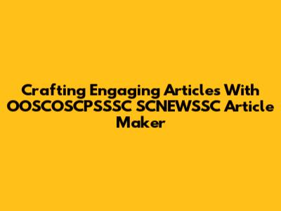 Crafting Engaging Articles With OOSCOSCPSSSC SCNEWSSC Article Maker